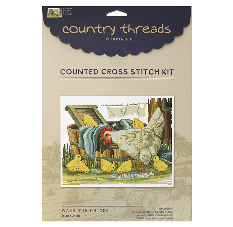 FIONA JUDE - Country Thread Cross Stitchwash tub chicks 26 cms x 34 cms