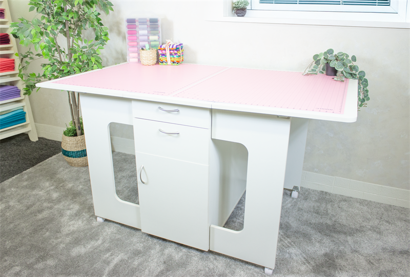 I am very happy with my cutting table. It fits my AO cutting mat with room for my large wool ironing mat at the end. Lots of storage and I love the thread drawer. I looked at a different cutting table but not only was it dearer it had open shelving on one side. My partner is not really a very good handyman and he had some difficulties putting it together but he got there in the end.