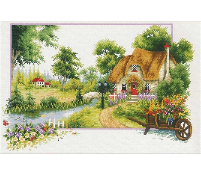 No Count Cross Stitch On White Aida 14 - summer cottage 46 x 31cm